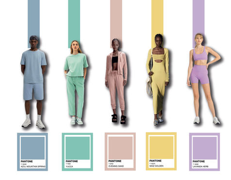 La paleta de colores en tendencia está aplicada a tipologías desarrolladas en textiles de punto, mostrando la versatilidad dentro del género.